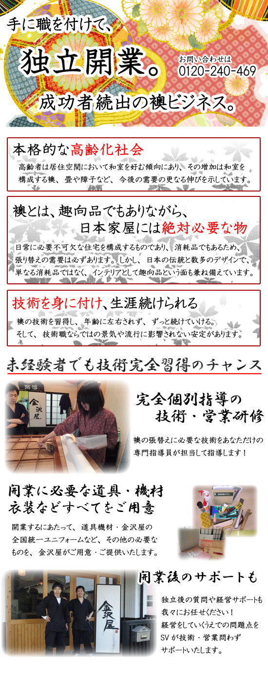 モデル収支--襖で独立開業、金沢屋FC(フランチャイズ)事業部、公式ウェブサイト